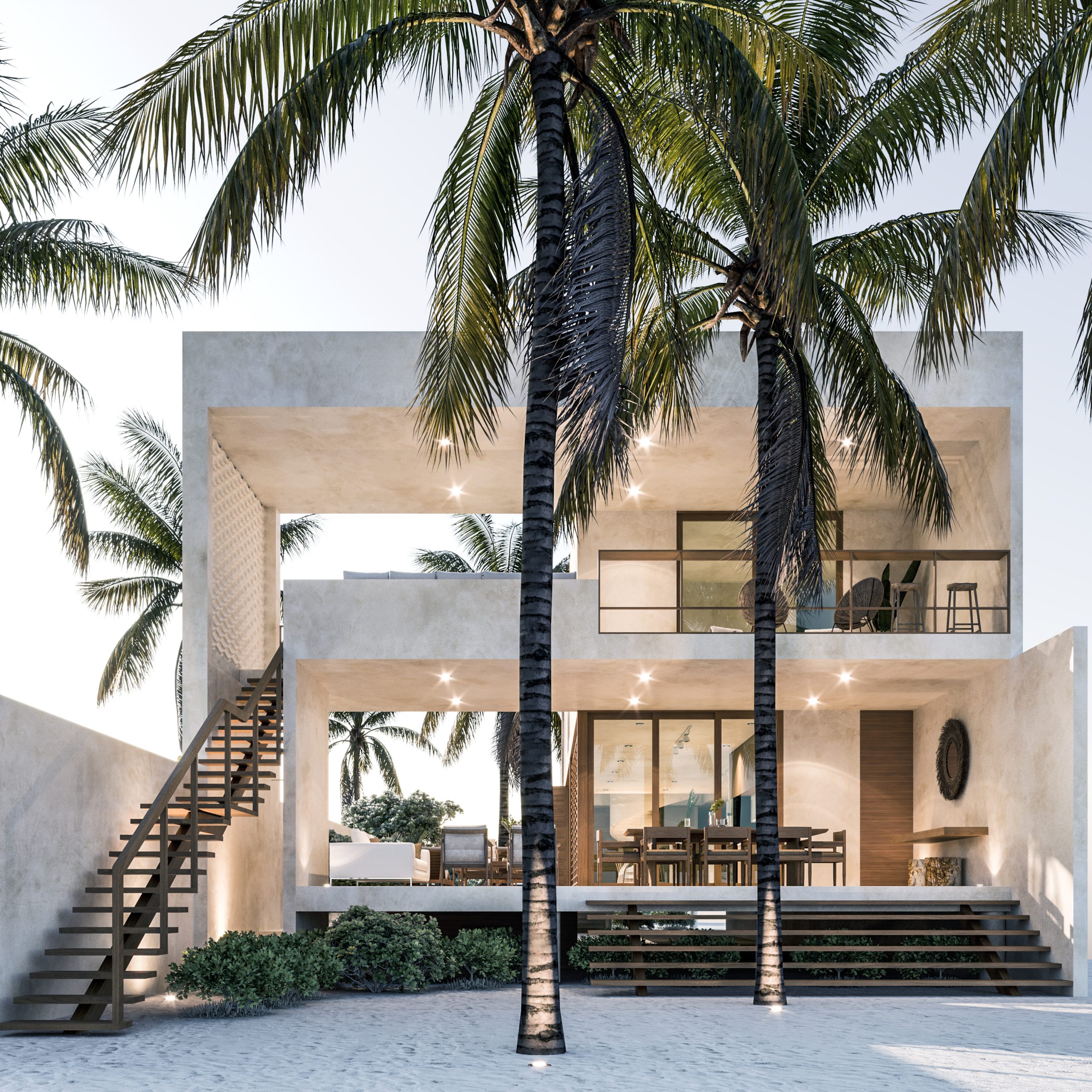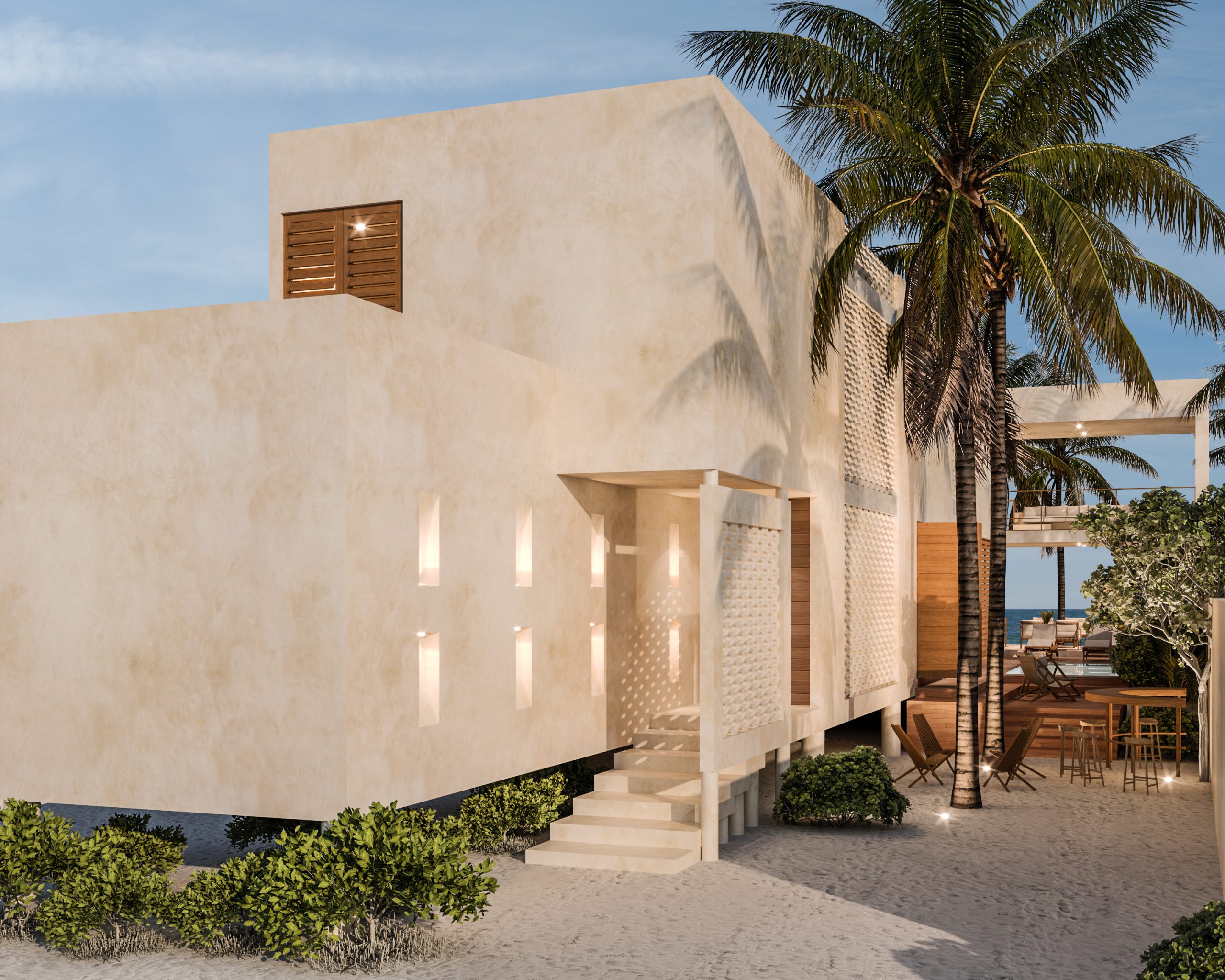 La Casa de Playa AF se sitúa en una ubicación privilegiada a lo largo de la costa yucateca, justo en primera línea frente al mar. Con una orientación norte-sur, el diseño de la casa ha sido meticulosamente concebido para capitalizar al máximo estas ventajas naturales, creando un ambiente fresco y acogedor.
