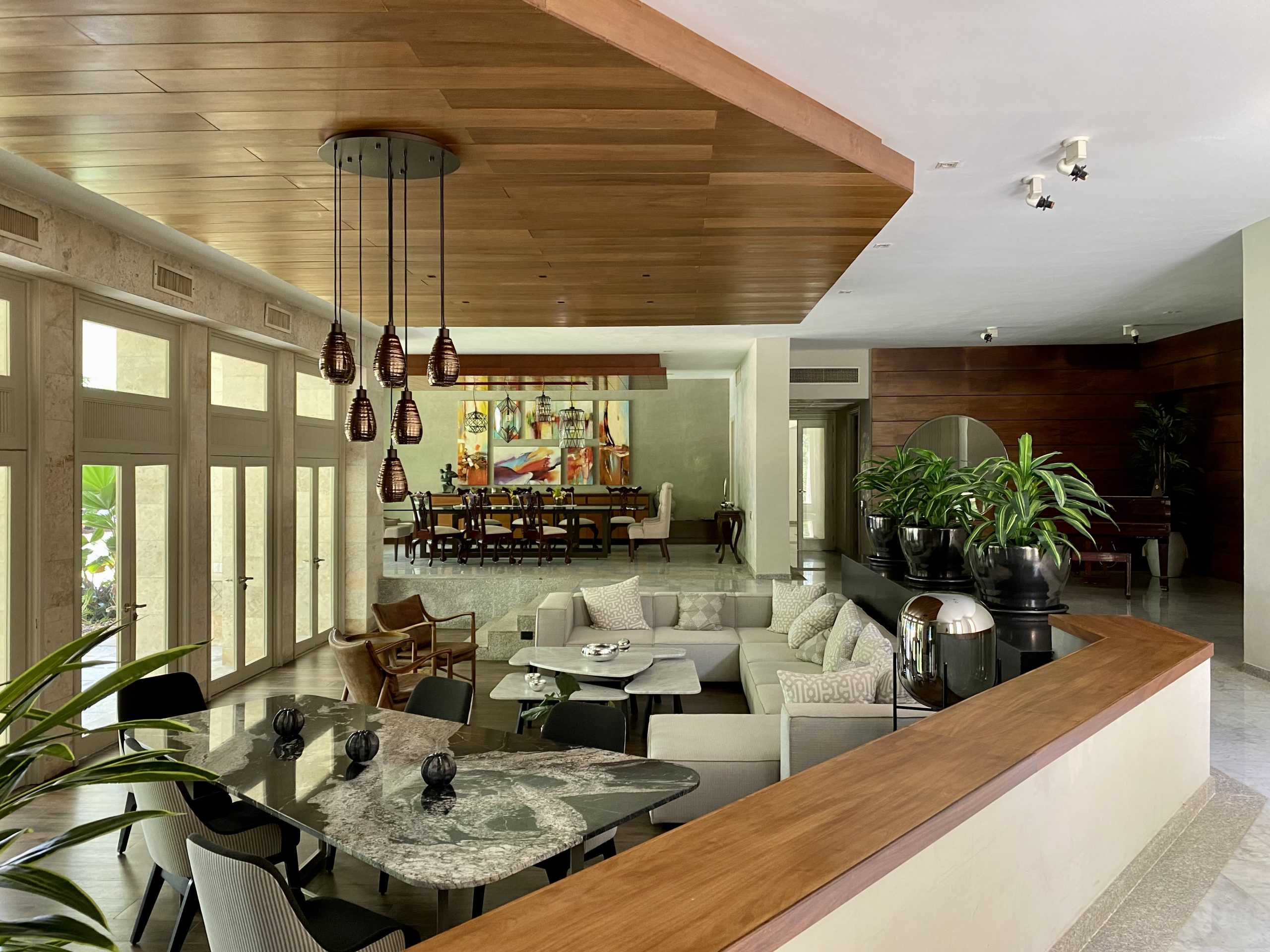 El proyecto de diseño de la Casa BM fue concebido como una intervención de interiorismo destinada a revitalizar y rejuvenecer las áreas sociales de una casa originalmente construida en la década de los 80. La premisa del diseño fue elevar el estándar en cuanto a lujo, comodidad, iluminación y calidez, con el objetivo principal de fomentar la convivencia familiar y con los invitados.